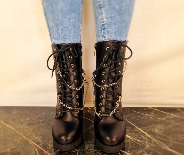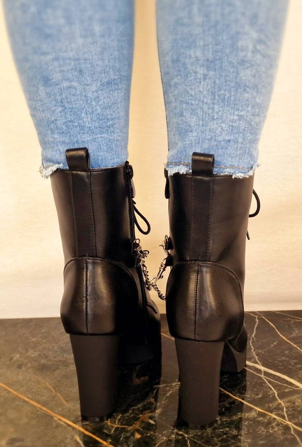 Zwart laarsje met 2 kettinkjes en hoge hak