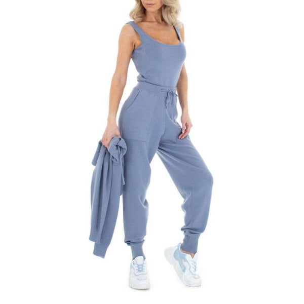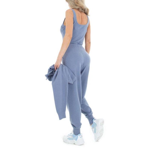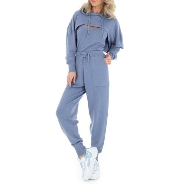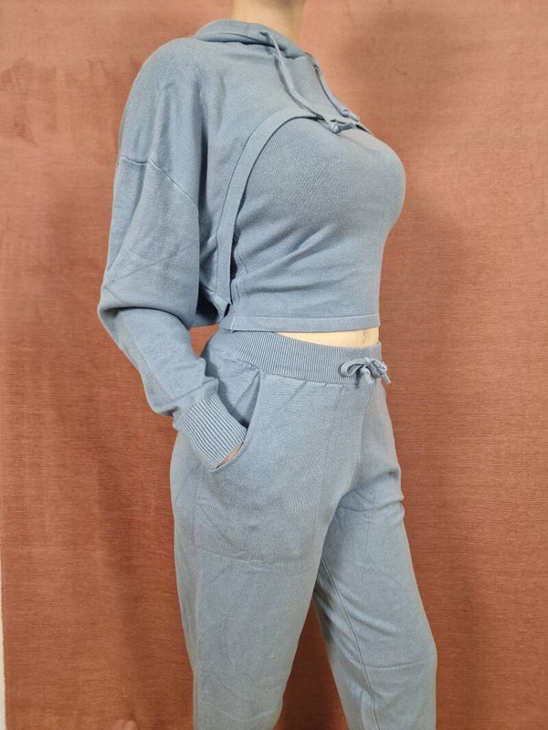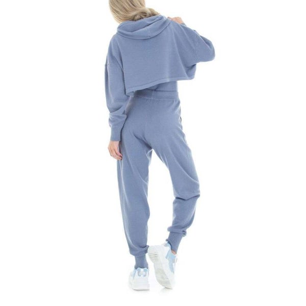 Sportieve set met broek, cropped top en een uitgesneden pullover.