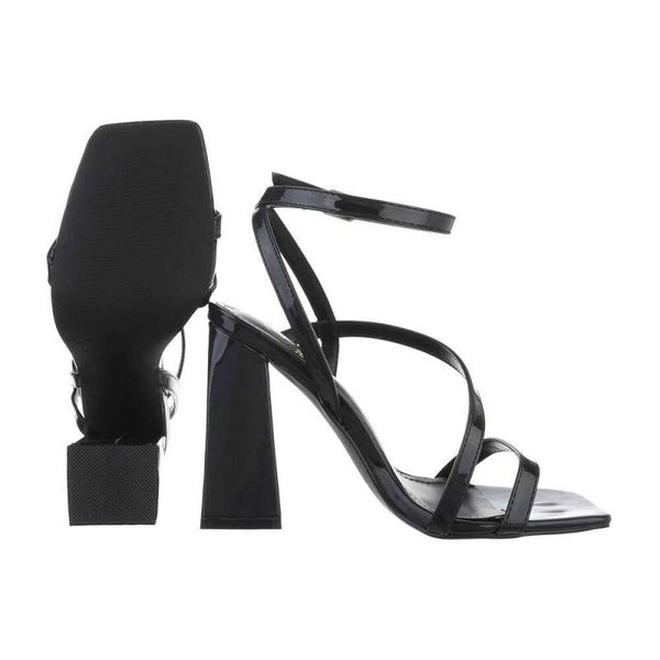 Mooie lak pump met blok hak en smalle bandjes.