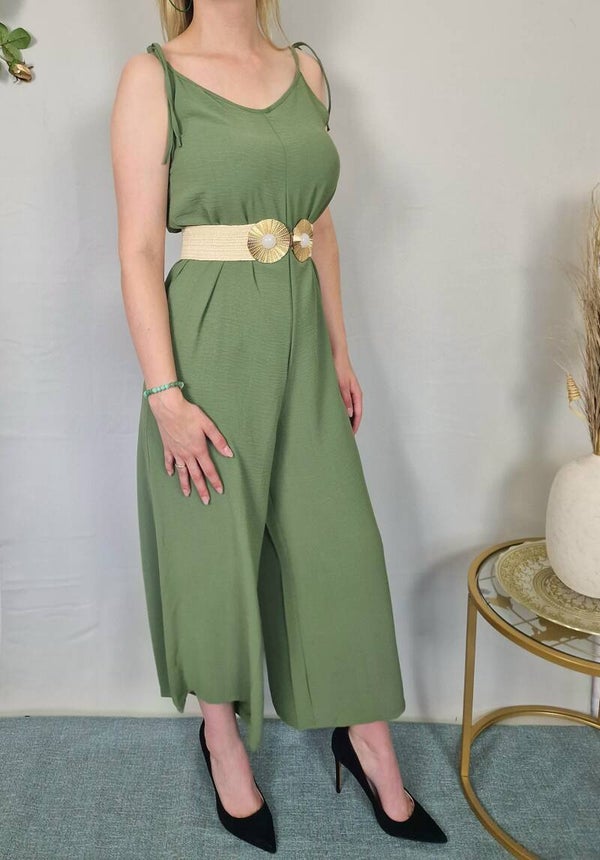 Spagetti bandjes en wijde pijpen in de kleuren Kaki groen en Zwart