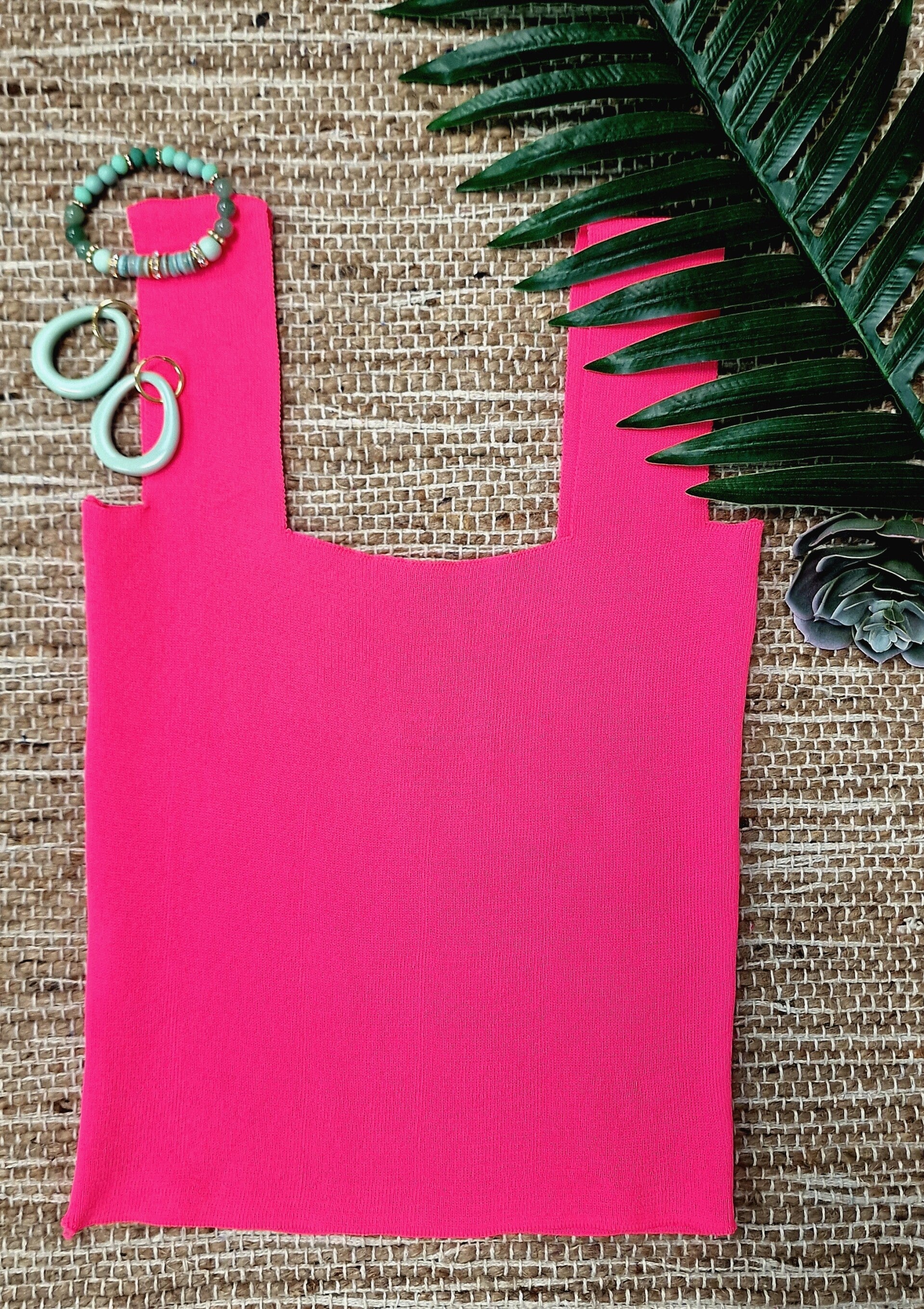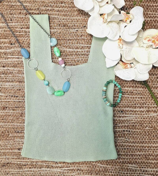 Topje van ribstof in de kleuren Roze, Zand, Crem Wit, Licht Blauw, Zacht Groen, Fel Groen, Zwart.