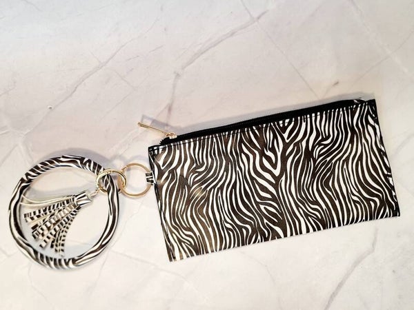 Klein tasje met decoratieve ring, en voorzien van een ritsluiting.